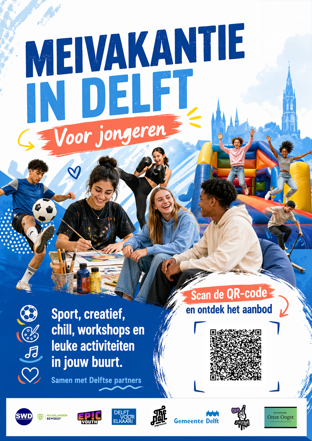Meivakantie in Delft – activiteiten voor jongeren (flyer met QR code)