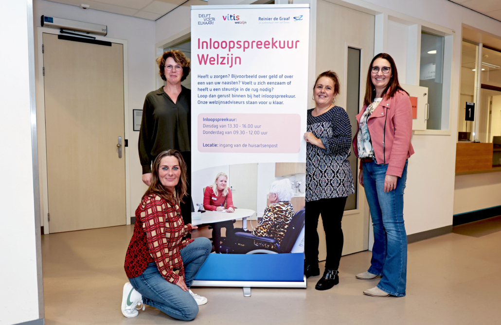 Sinds november 2023 is er in het Reinier de Graaf Gasthuis een inloopspreekuur Welzijn voor patiënten, naasten en bezoekers met niet-medische vragen of problemen. Bijvoorbeeld voor mensen die eenzaam of overbelast zijn of kampen met financiële problemen. Mensen kunnen zonder afspraak terecht op dit spreekuur voor advies, een luisterend oor of een doorverwijzing naar een wijkondersteuner.